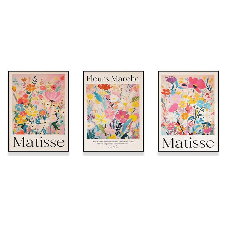 Bring vibrant artistic energy into your space with this stunning assortment of three Matisse-inspired floral prints. Each framed piece bursts with bold, cheerful colors and organic botanical forms that capture the essence of the legendary artist's joyful aesthetic. Perfect for creating a gallery wall or brightening individual rooms, these prints celebrate the beauty of nature through expressive color and dynamic composition. The thoughtfully curated collection works beautifully together or stands alone as a statement piece, adding warmth and creative flair to any décor style.