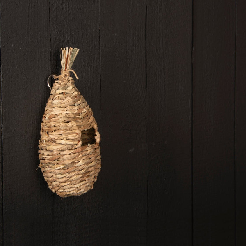 About the Wren Nesting Bag This traditional nesting bag made from seagrass offers small birds a goodplace to nestle and helps maintain or bring back a population in an area. On top of that, this nesting pouch will often provide birds with a place to hide from the bad weather in winter times. Place this pouch on a tree or wall, up 2 meters (6.6 ft) high, in a well-hidden location covered by dense shrubbery or vines, in a quiet and somewhat sheltered spot (not directly in the sun or on the rainside) with a free flight path for the bird.- mounting loop on the backside- 35mm diameter entrance hole. Materials: Reed, iron Dimensions: 4.5x4.5x10.2 in Please note: Colours and designs are representative, with variations in device displays/settings and lighting they may vary slightly in person. If you have any questions, please call 613.232.1733 and we would be happy to assist you!